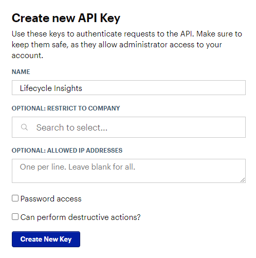 6. Copy the New API Key - YOU WILL NEED THIS LATER TO ENTER INTO LCI