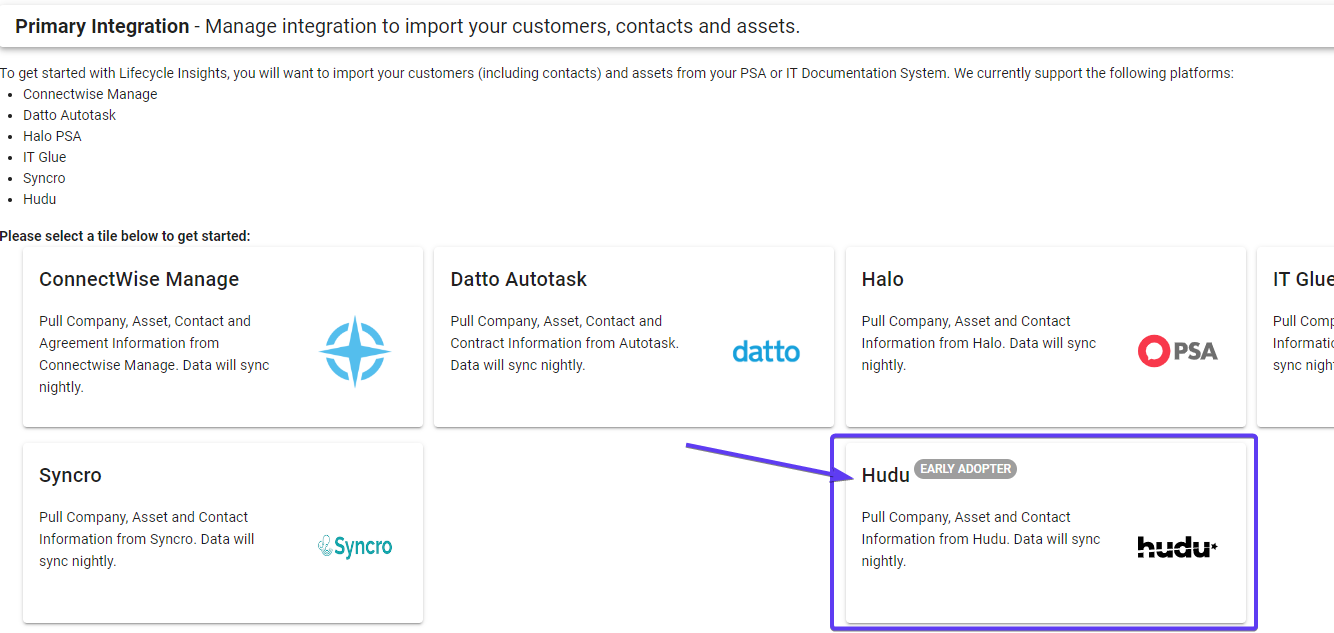 Complete the following steps to integrate Hudu with Lifecycle Insights:
