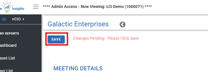 The Business Review section in LCI allows you to create meetings of any type and set scheduled re-occurring meetings for your clients.
