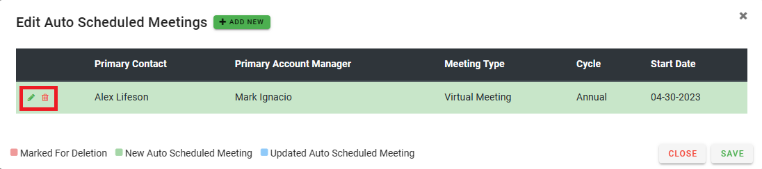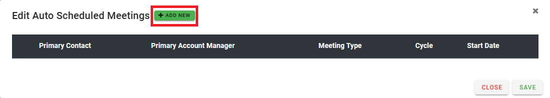 To add auto scheduled meetings for your client, click the add new button at the top of the schedule window. You can schedule multiple meetings each client.
