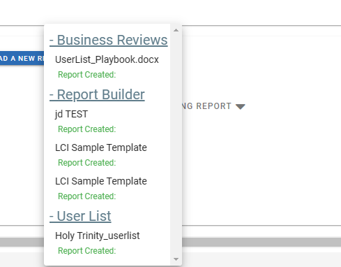 Add existing LCI reports, relevant documents, or other files to your meeting event by selecting the add existing reports button, or by clicking the Upload New Report button and use the drop window to insert other files.