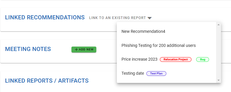 You can also link existing recommendations to a meeting by using the drop-down selector to link on or more recommendations to the meeting.