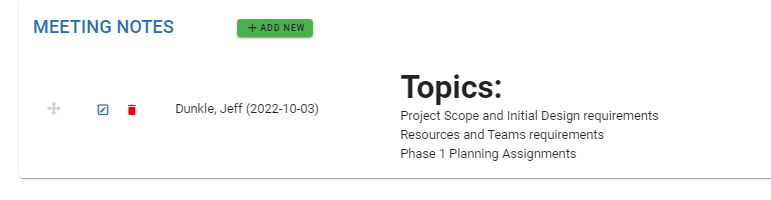 Use the available icons to re-order, edit. or delete your meeting notes.