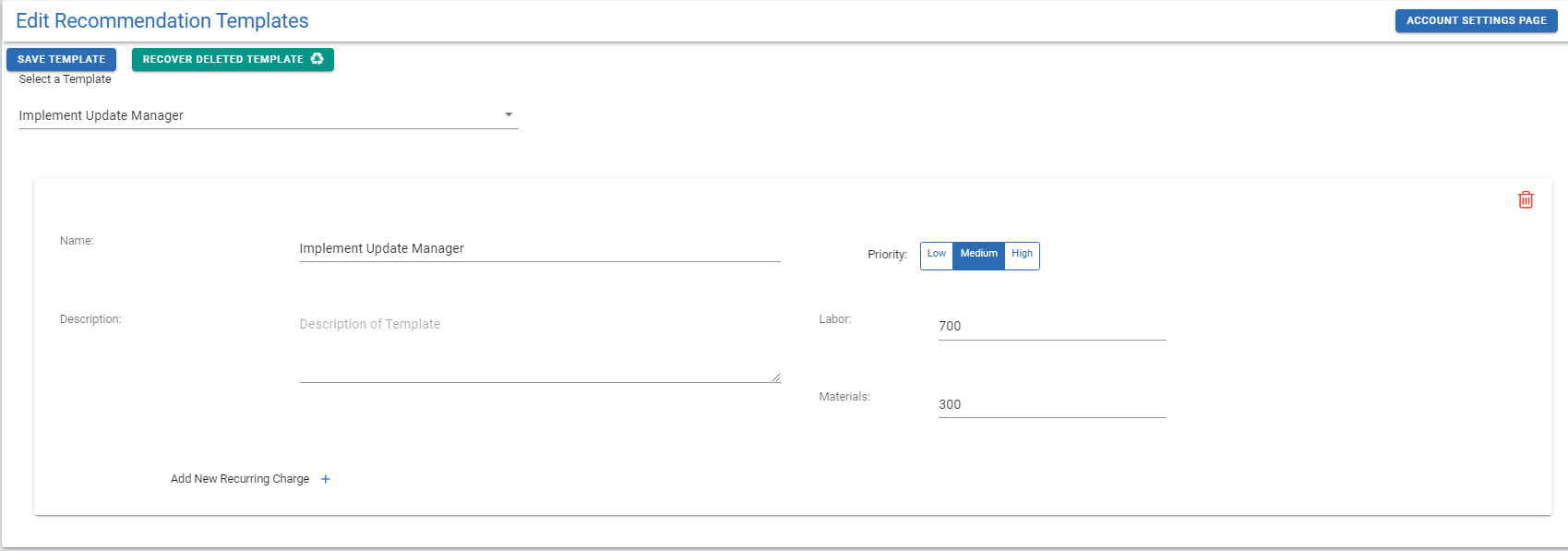 Click the link for information on how to use the Recommendations screen to create a template. Create Recommendation Templates