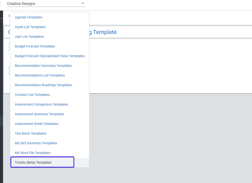 2) Step 2: To add the Tickets component to your Report Builder template, click on Add Component, then select Tickets (Beta) Templates