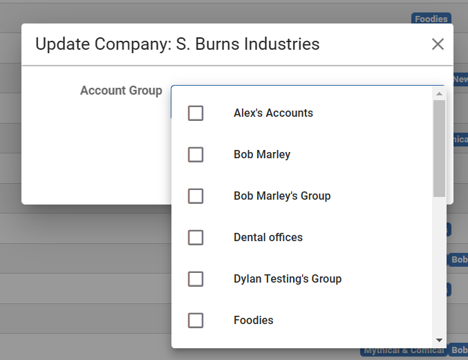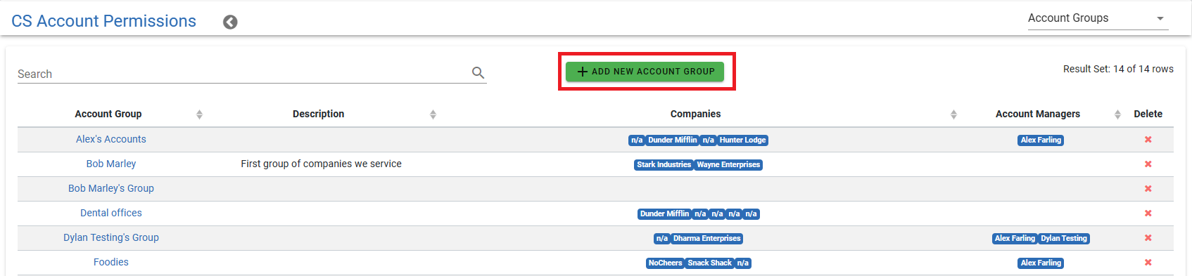 Each company can be assigned to multiple Account Groups if needed. If a company is not assigned to an account group, member users of that account group will not have access to the company or data in the Customer Success modal.