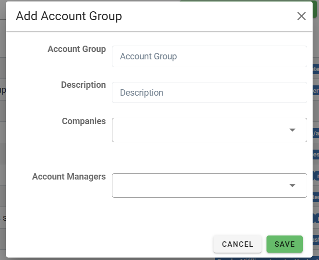 This page allows you to assign users to account groups as well as create and assign account managers to the group in order to align your customers with your account managers.