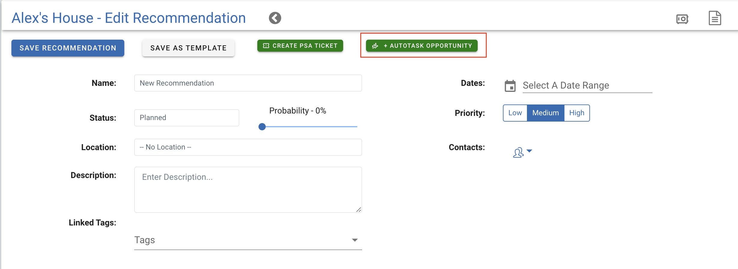 - Link to an existing Autotask Opportunity