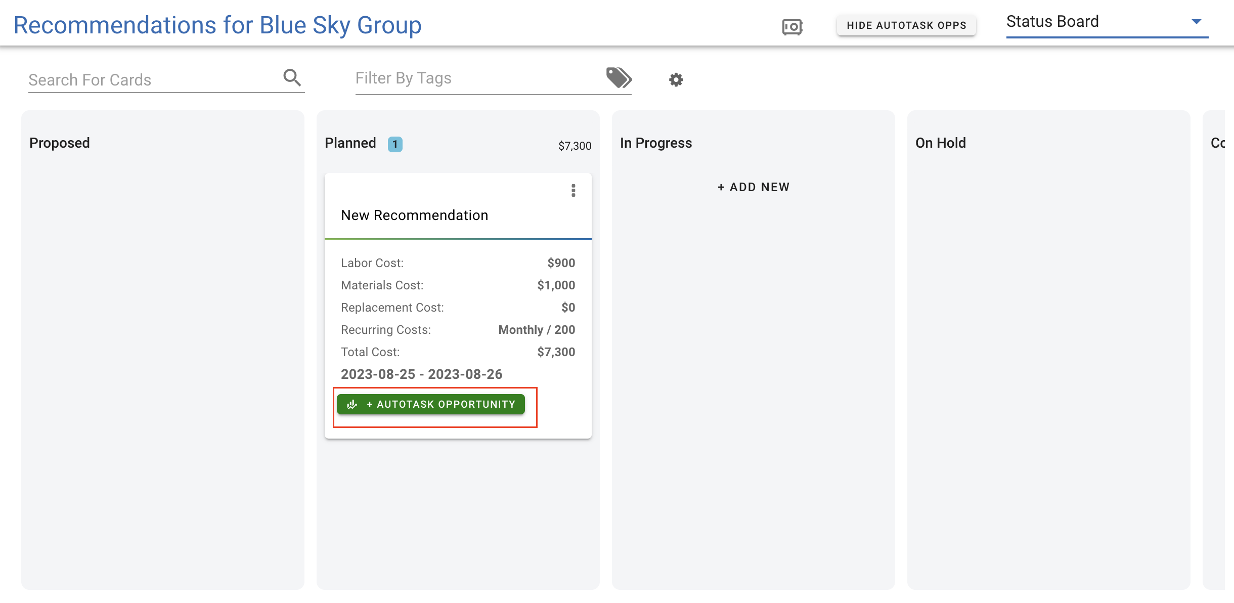 - Recommendation Status Board (if Autotask Opps are visible in the top title bar)