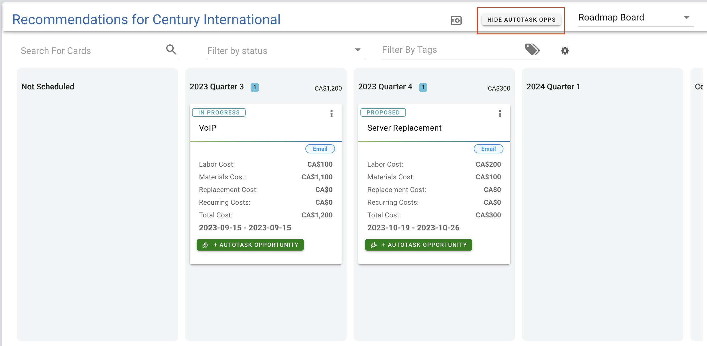 - Recommendation Roadmap Board (if Autotask Opps are visible in the top title bar)