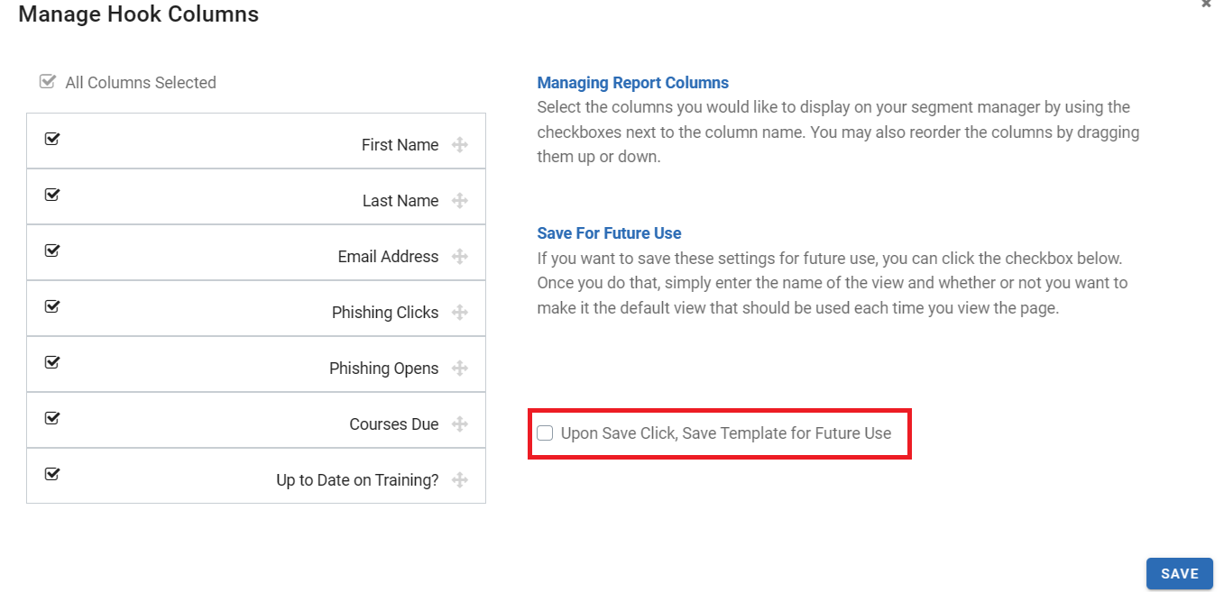 Use the Column Manager icon to select the columns you wish to display for your report.